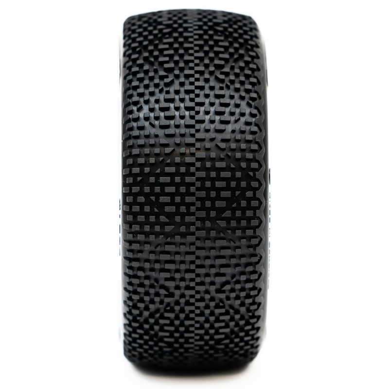 The Miura has been engineered for massive forward traction and exceptional performance. One side of the wheel provides added side grip and improved steering (Pins Out), while the other side reduces side traction in high bite, edgy conditions (Blade Out). This versatile design makes the Miura the ideal choice for tracks that are not entirely clean, offering superior grip and stability in challenging conditions.