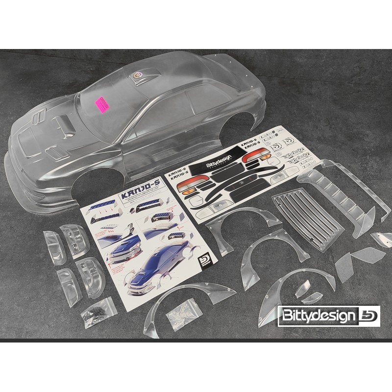 Enlarged fenders, aerodynamic flaps and an exaggerated wing, with our KANJO-S body your 1/7 model will look more aggressive and street style than ever, ready to bite the asphalt and drift in the car park behind the house?