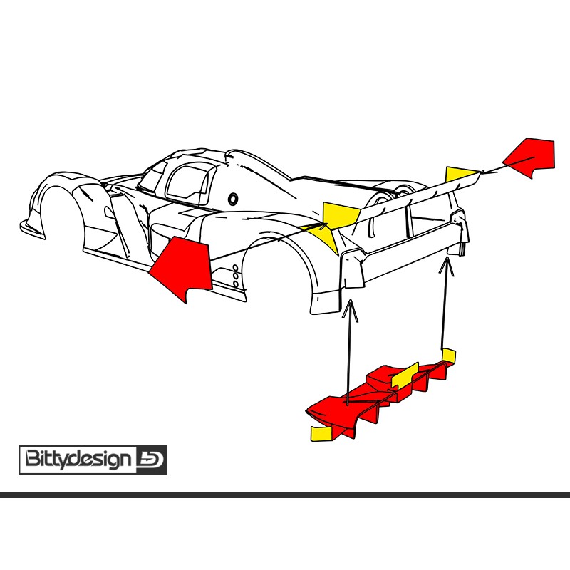 Specially designed to be installed on the Bittydesign AMR10 1/10 LMH body shell, the lexan clear kit consists of;