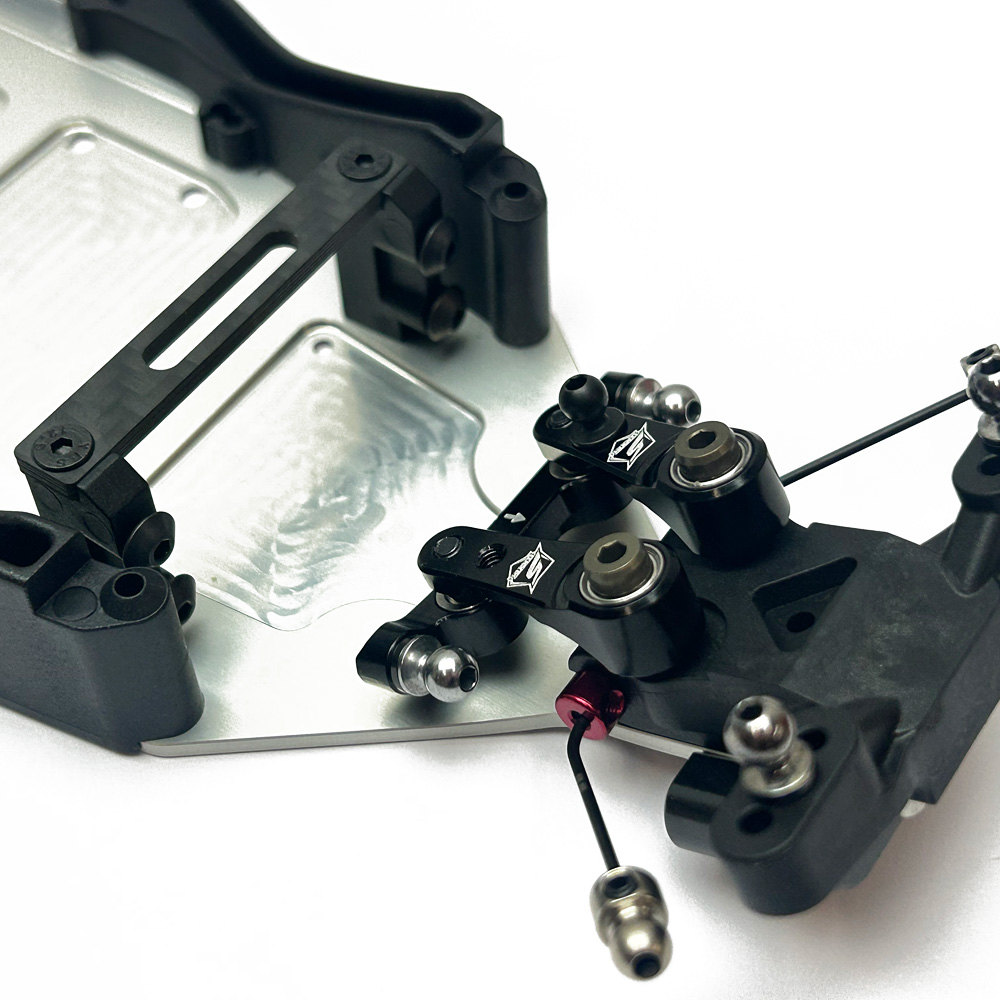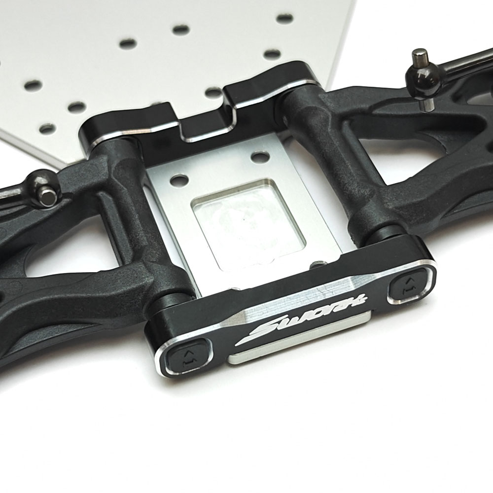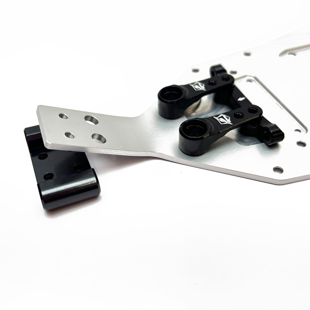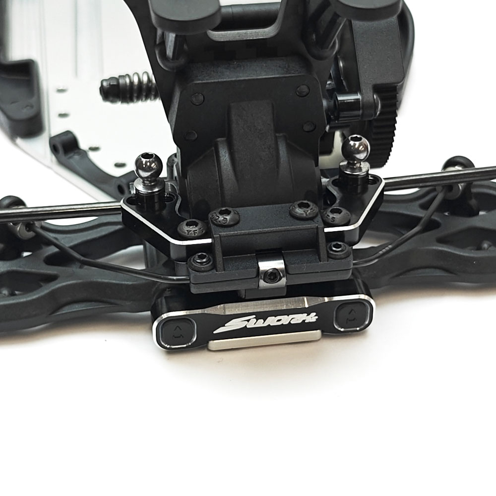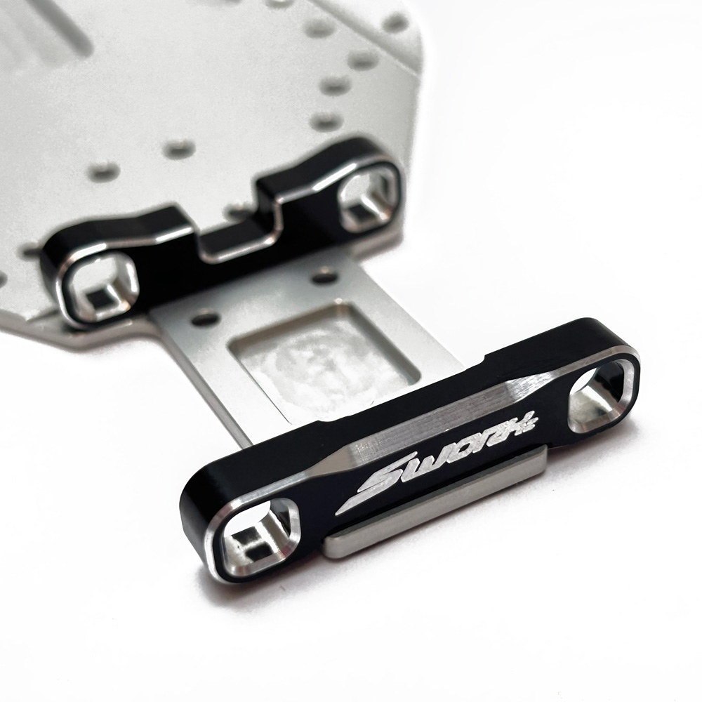 Props to SWORKz here for including both machined aluminium steering parts and a machined aluminium 2.5 degree lower arm holder in the kit as standard, further increasing performance, durability and bling factor! The lower arm holder can be flipped to run +2.5 degrees of kick-up, or -2.5 degrees of kick-up, but there is also an option of 0 degrees sold separately as a tuning option.