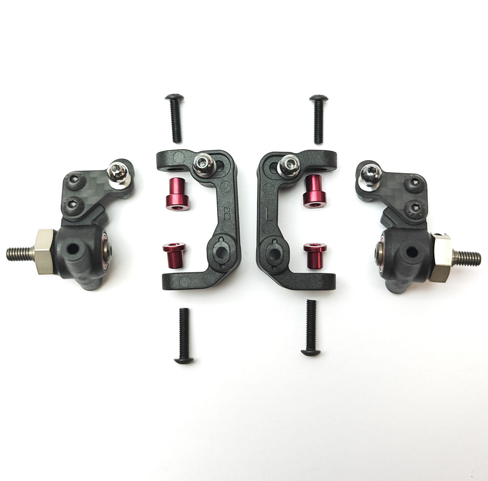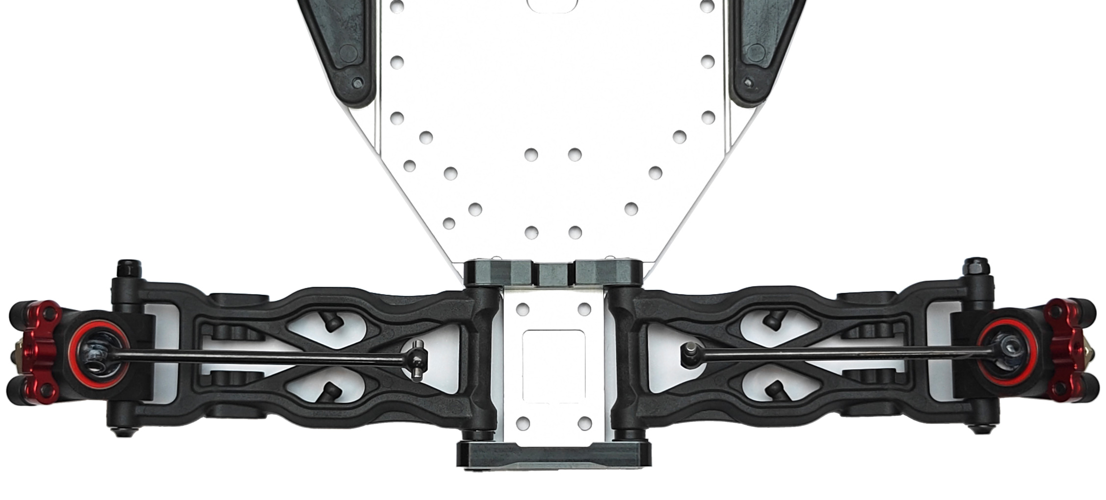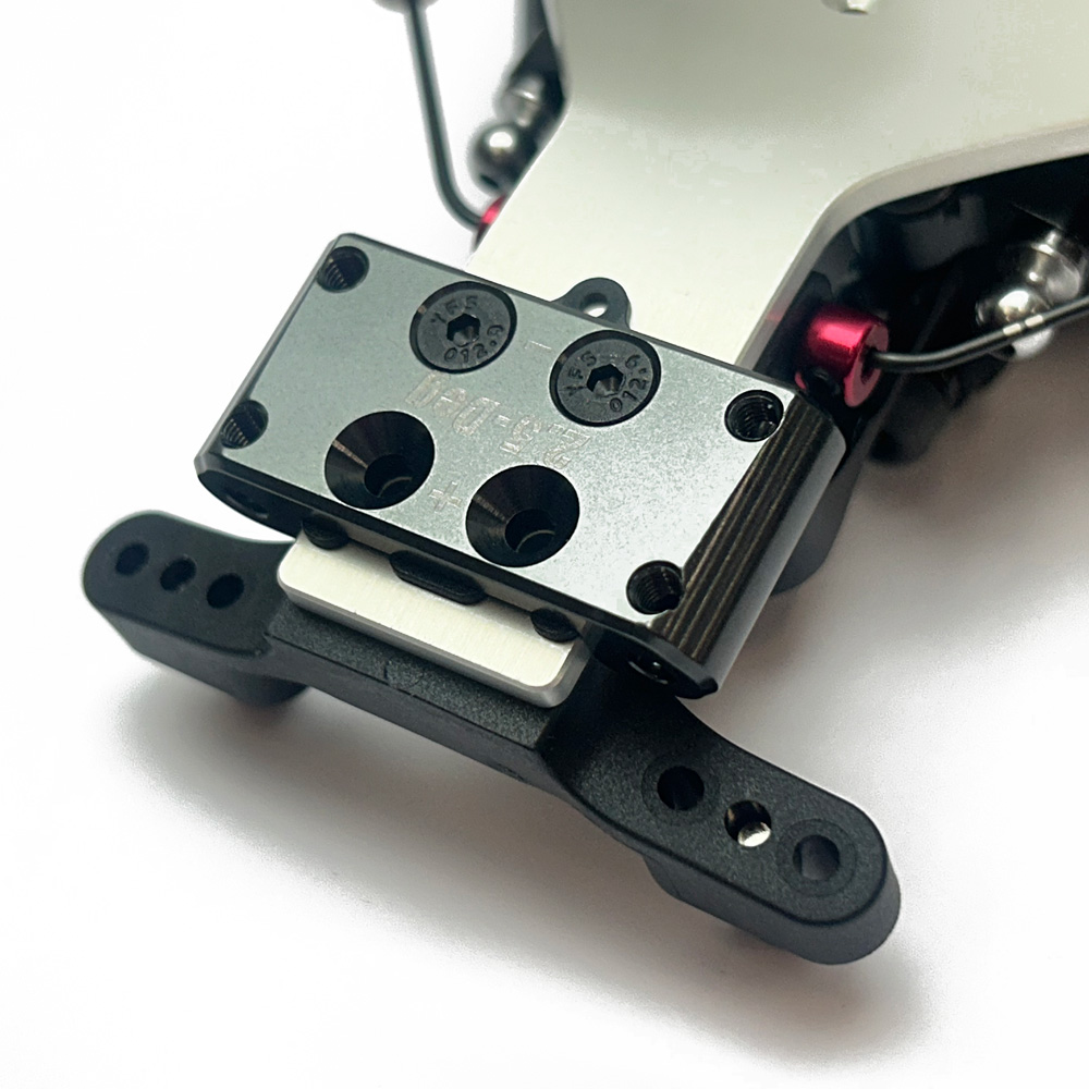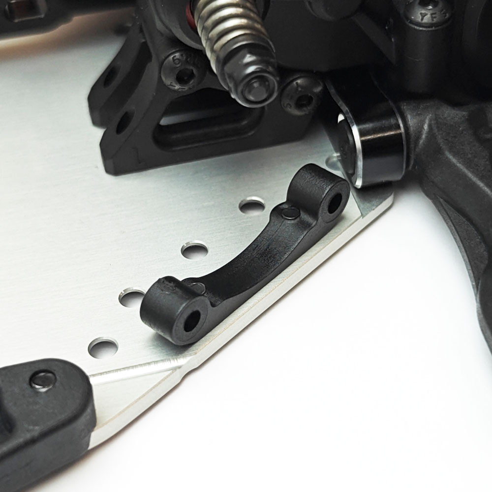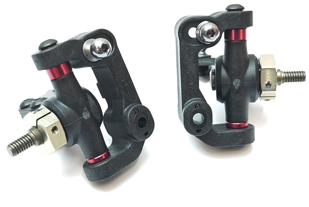 Props to SWORKz here for including both machined aluminium steering parts and a machined aluminium 2.5 degree lower arm holder in the kit as standard, further increasing performance, durability and bling factor! The lower arm holder can be flipped to run +2.5 degrees of kick-up, or -2.5 degrees of kick-up, but there is also an option of 0 degrees sold separately as a tuning option.