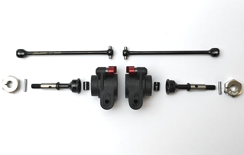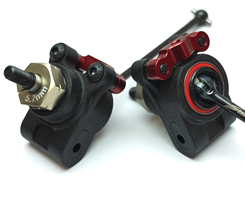 The front hub assembly is largely carried over from the S12-2 platform, but it does feature a revised axle design which now utilises slip-on style drive hex the same as that utilised on the rear, meaning you can easily interchange any of the hexes to alter either front or rear track width.