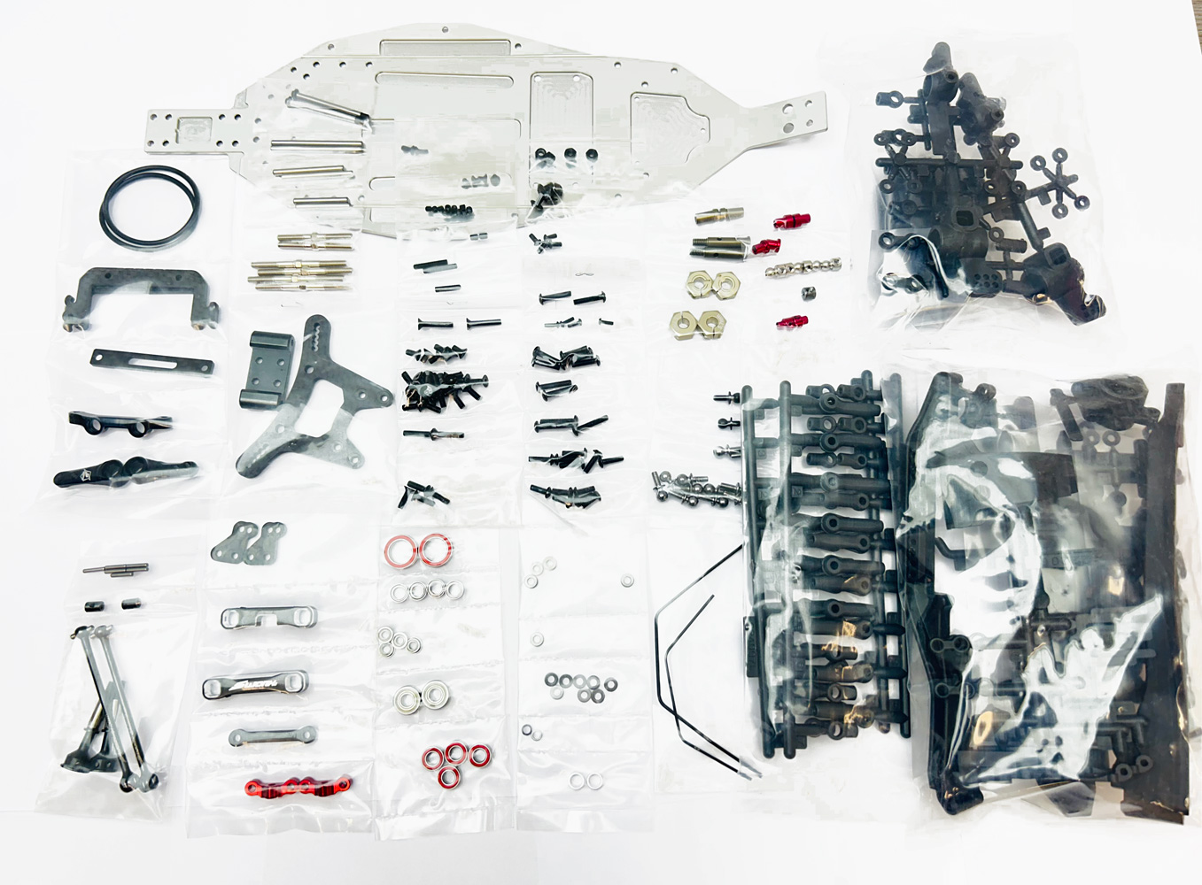 Now more parts that used to be optional are included with aluminium bellcranksand ackerman plate as well as the new aluminium front bulkhead! This was £90 worth of options previously!