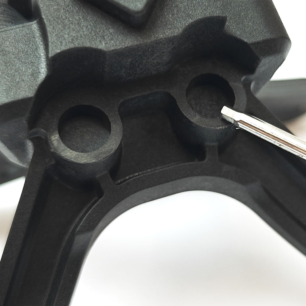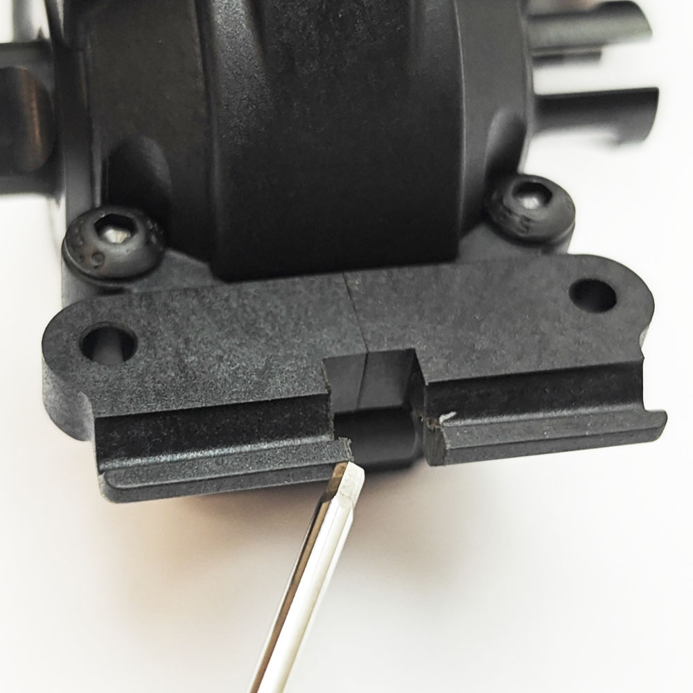 We noticed that after the SW-222007 Upper Plate was installed, the steering did seem to bind slightly. This would naturally wear in as it was such a minimal issue, but to ensure it was super free straight off the bat, we ended up filing a small amount of plastic away from the backside of the upper plate where it locates onto the steering posts, where it originally was came into contact with the steering arms. If you don't do this there is zero issue but a there is no harm in getting this done to make the first run even better!