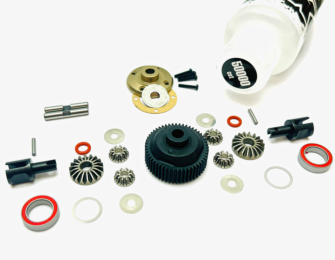 The nee diff gear is SW2502402C SWORKz S12 Series Pro-composite Carbon Diff Case Set which is totally backwards compatible and far harder and lower friction than the older variant